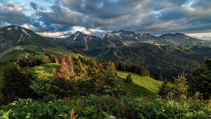 In der Region Portes du Soleil, die sich zwischen der Schweiz und Frankreich erstreckt, gibt es viele Adrenalin freisetzende Routen. Das Winterskigebiet mit seinen 650 Pistenkilometern verwandelt sich im Sommer in einen perfekten Ort für jene, die den Nervenkitzel der Schwerkraft auf Geländetouren suchen. Das Gebiet gehört zu den ersten Ferienorten, die e-MTB-Routen kartographierten ließen. Vom Startpunkt Morzine in der Haute Savoie (980 Meter über dem Meeresspiegel) ausgehend stehen überall kostenlose Ladepunkte bereit sowie zahlreiche speziell für E-MTBs konzipierte Strecken zur Auswahl.