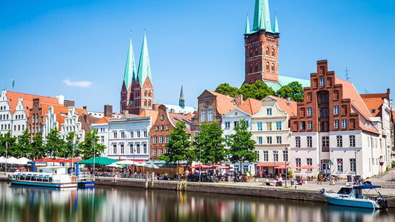 Für das nächste Teilziel entlang der Route gibt es viele Namen: Hansestadt, Marzipanstadt, Stadt der sieben Türme oder auch Buddenbrock-Stadt. Gemeint ist in jedem Fall Lübeck. Die Hafenstadt liegt an der gleichnamigen Bucht, wo sich die Seebäder aneinanderreihen. Lübecks historische Altstadt mit dem berühmten Holstentor, dem Dom und den über 80 historischen mittelalterlichen Wohngängen und Stiftshöfen sind Weltkulturerbe: Bei einem Bummel durch alte Gassen und Hinterhöfe ragt irgendwann die Petrikirche hinter den Häusern hervor. Vom Turm des Backsteinbaus hat man einen herrlichen Blick über die Innenstadt. Von dort ist es nicht weit bis zum Burgkloster und seinem Café „Fräulein Brömse“. Dort kann man sich Kaffee, Kuchen und das Lübecker Marzipan munden lassen, das nach Ansicht vieler Einheimischer ebenfalls zum Welterbe gehören sollte.
