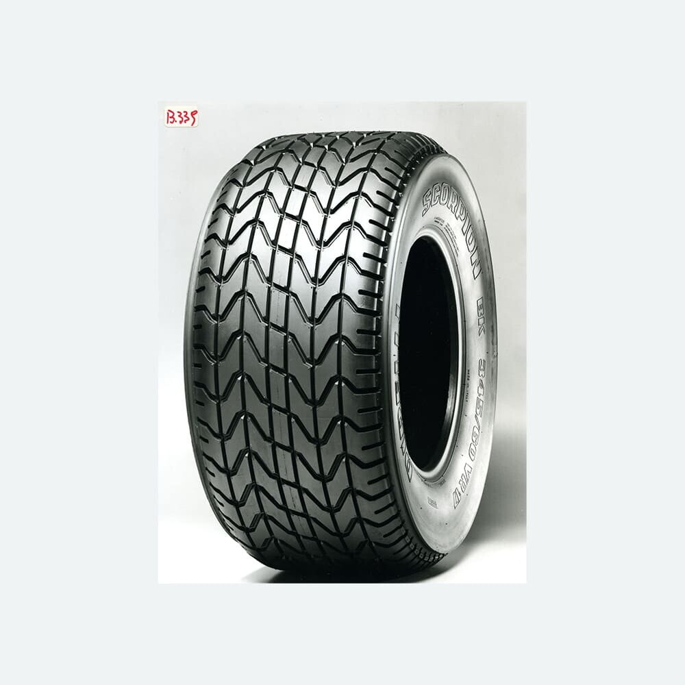 Alle Scorpion-Reifen für den Lamborghini LM002 hatten eine sehr robuste Karkasse mit einem Stahlgürtel und einen Nylon-Gürtelwinkel von Null Grad. Sie konnten Stöße absorbieren, was sie bei schnellen Manövern reaktionsfähiger machte. Zudem mussten die riesigen 345/60 VR17-Reifen die Übermenge an Kraft des V12-Motors in Schach halten, der auf dem Asphalt seine sportliche Leistung zum Ausdruck brachte. Nicht zuletzt hatten die Scorpion-Reifen auch unter den typischen hohen Temperaturen in den Wüstengebieten zu funktionieren, in denen sie häufig eingesetzt werden. Während der Entwicklung wurden ihre Fähigkeiten bei Spitzengeschwindigkeiten von über 220 km/h auf die Probe gestellt. Also bei einem Tempo, das die Möglichkeiten des LM002 übersteigt. Ingenieure testeten die Überlastfestigkeit durch einen 46-stündigen Dauerlauf bei 140 km/h und einem Gewicht von 1.000 kg auf dem Rad. Bei der Null-Druck-Prüfung hingegen wurden über eine Strecke von 1.100 km schrittweise ansteigende Lasten aufgebracht. Nach dem Aufpumpen folgte für dieselben Reifen ein weiterer Test über 165 Stunden mit einer Last von 1.650 kg.
