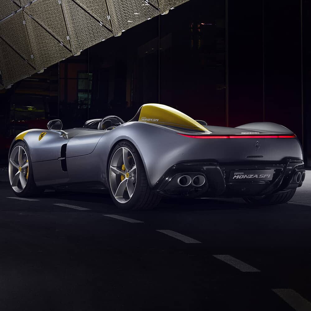 Um diesen in limitierter Auflage produzierten neuen Sportwagen zu entwerfen, ließ sich das Ferrari Style Center unter der Leitung von Flavio Manzoni vom Rennsportcharakter legendärer Modelle wie dem 166 MM von 1948, dem 750 Monza und dem 860 Monza inspirieren. Von den beiden letztgenannten Modellen erhielt der Ferrari Monza seinen verpflichtenden Namen. Er wird in zwei Varianten angeboten: als SP1 (Einsitzer) und SP2 (Zweisitzer). Bei beiden Modellen steht vor allem der Fahrspaß im Vordergrund, der alleine schon durch das außergewöhnliche Verhältnis zwischen Gewicht und Leistung garantiert würde. Das beeindruckende Resultat entspringt der klaren Zielsetzung, das Fahrzeug möglichst leicht zu machen, um dadurch eine möglichst direkte Verbindung zwischen Asphalt und Lenkrad zu garantieren. Denn genau das schätzen die Liebhaber des unverfälschten Fahrspaßes an einem Sportwagen. Aber selbstverständlich befinden sich zwischen Asphalt und Lenkrad noch die Reifen. In diesem Fall die speziell für den Ferrari Monza entwickelten, im Sinne der hauseigenen Perfect Fit-Strategie maßgeschneiderten Pirelli P Zero Reifen. Bei den P Zero handelt es sich um eine echte Besonderheit, denn erstmals wird ein Modell aus Maranello mit 21-Zoll-Rädern ausgestattet.
