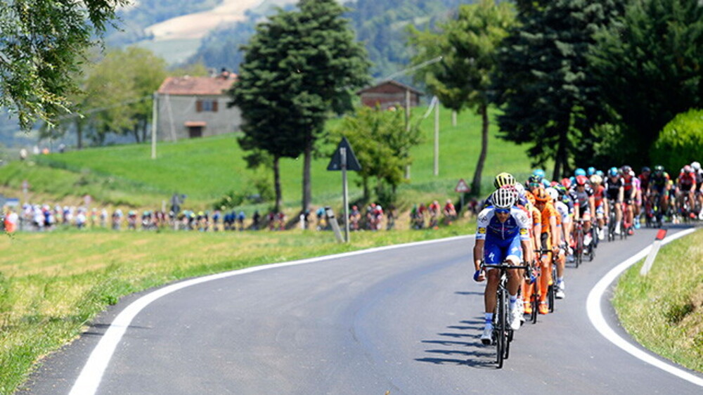 As a matter of fact, the Forlì-Reggio Emilia stage is very much representative of the country - for a start, because it is the longest one of the Giro; 234 kilometres on a mid-May day look like a long and successful field trip. The race started in Forlì, Romagna, and soon headed westward, passing by Faenza, known for its ceramics. The first part of the route was unpredictable as it left the Via Emilia heading southward through the orchards of Valle del Lamone and the gypsum ridges where Brisighella is located. Climbs were gentle, leading first to the woods of Marradi - the capital of Tuscan Romagna - and then to the Colla di Casaglia Pass with its 913-metre ascent and fresh air. At that point, the route plunged into the Mugello area, rich in churches and convents, strongly reminding of Gastone Nencini, the Lion of Mugello. Barberino marked a sudden change of pace as a group of riders led by Mirco Maestri - from the hometown of Reggio Emilia - escaped from the front of peloton and turned into A1. The toll stations of the most important Italian motorway were wide open, no electronic toll system being activated, transforming the race into a panoramic one. Because cycling is a matter of speed but, above all, of detours. The motorway detour finished just before Bologna, allowing the riders to flank the Mausoleum of Guglielmo Marconi, close to which RadioCorsa celebrated its ancestor announcing that the lead was starting to shrink.