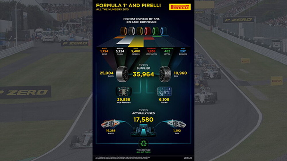It's all been about the number 4—four tyres and four compounds for our range of dry-weather tyres, called “slicks” for their lack of any of the blocks and channels that define a tread pattern, in an effort to achieve maximum grip at all times—and this is how the recently completed 2015 season went for us.