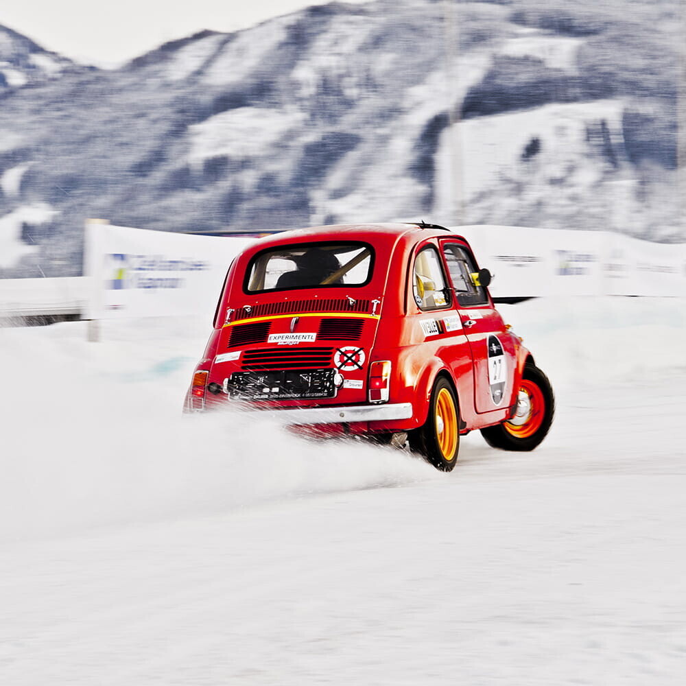 In 1937, motorcycles took to the frozen lake at Zell am See to give it a go and were soon followed by racing cars with suitably studded tyres. Over the years the motorbikes and cars stopped towing skiers and went all out against each other instead, racing at speeds of more than 110 km/h.