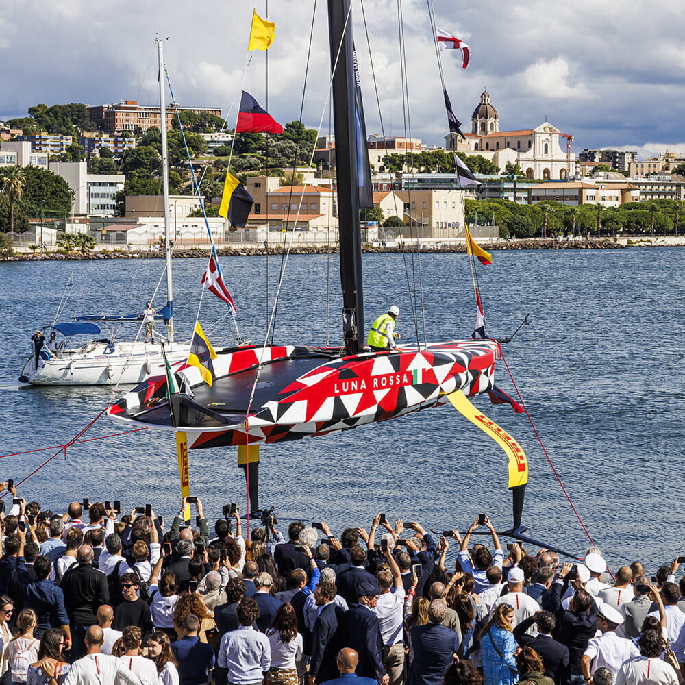 You don't have to go far to find out where this boat took shape. It was in fact designed and built at the Luna Rossa Prada Pirelli headquarters in Cagliari by resources within the team, in accordance with the rules imposed by the protocol of the 37th America's Cup. The result is an innovative design, complex in terms of engineering and technology, using experimental solutions in every sector and the latest-generation materials.