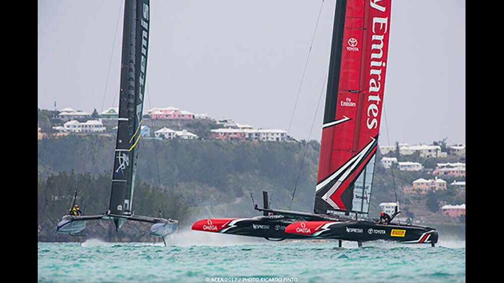 The 2013 edition saw the New Zealand team add another innovation to their catamarans: foiling, that is, the ability of the boat to lift off the water, suspended on just three points – a cleverly designed keel and two hydrofoil rudders. The best settings are critical to get the best performance: the “fins” can be moved by a mere fraction of a degree. As a result, speeds have increased dramatically, reaching up to 50 knots (almost 100 km/h or 60 mph). This “invention” has changed sailing for ever. Indeed, the Nacra 17 class of foiling catamarans are now seen at the Olympics. Once again, the America's Cup leads the way.
