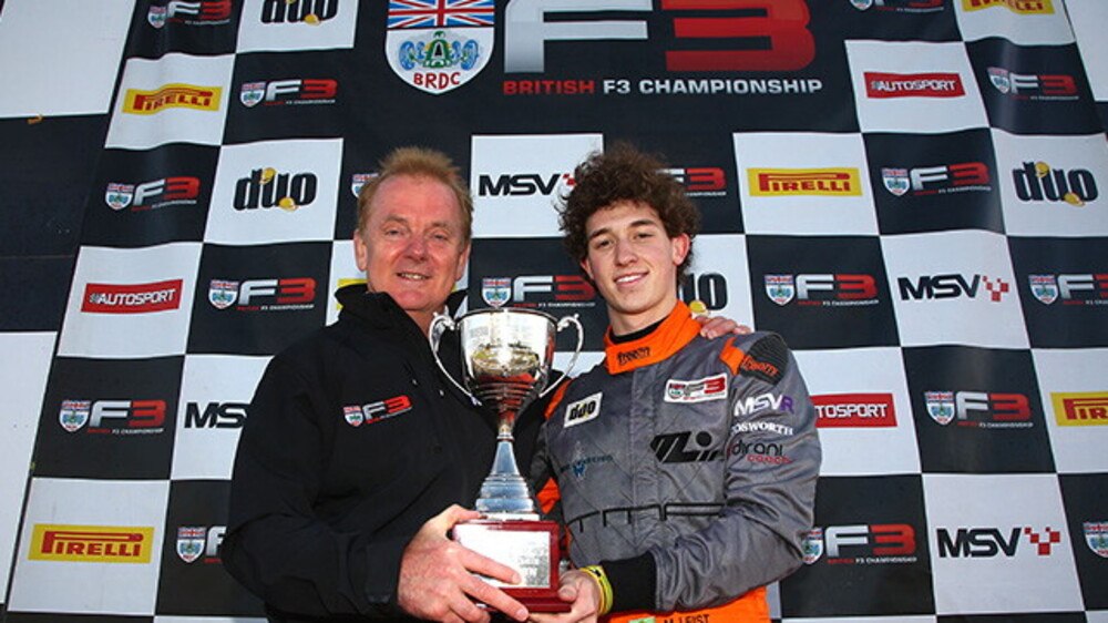 After winning races in the MSA Formula series, he stepped up to BRDC British F3 with Double R Racing – a team originally co-founded by Kimi Raikkonen, whose former drivers include Bruno Senna, Ayrton's nephew. With wins at Snetterton, Brands Hatch and Silverstone, Leist remained a title contender until the final round at Donington, where another victory enabled him to overhaul the leader and clinch the title, three days after his 19th birthday.