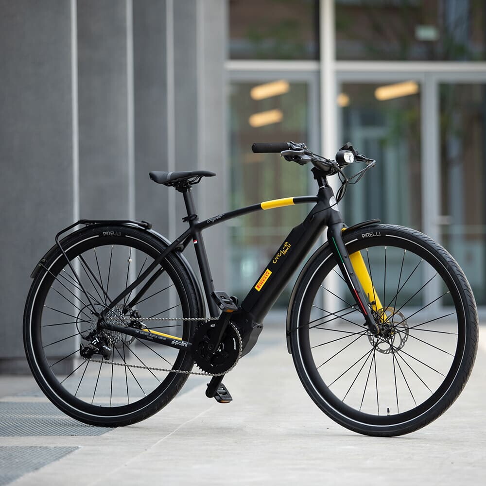 Simone Bonini's e-bike is one of the models available for rent from CYCL-e around, the service through which Pirelli promotes the use of electric bikes in surroundings where they are at their best. More in detail, it is a versatile, robust and durable urban e-bike with an AI6061 light alloy frame and an elegant design enhanced by the Pirelli colours. The tread pattern is derived from Pirelli motorbike tyres to ensure the best riding dynamics and excellent cornering grip. The set-up includes disc brakes, 11 speeds, Selle Royal RoyalGel saddle and M99 Supernova low beam and high beam headlight, just like on cars.