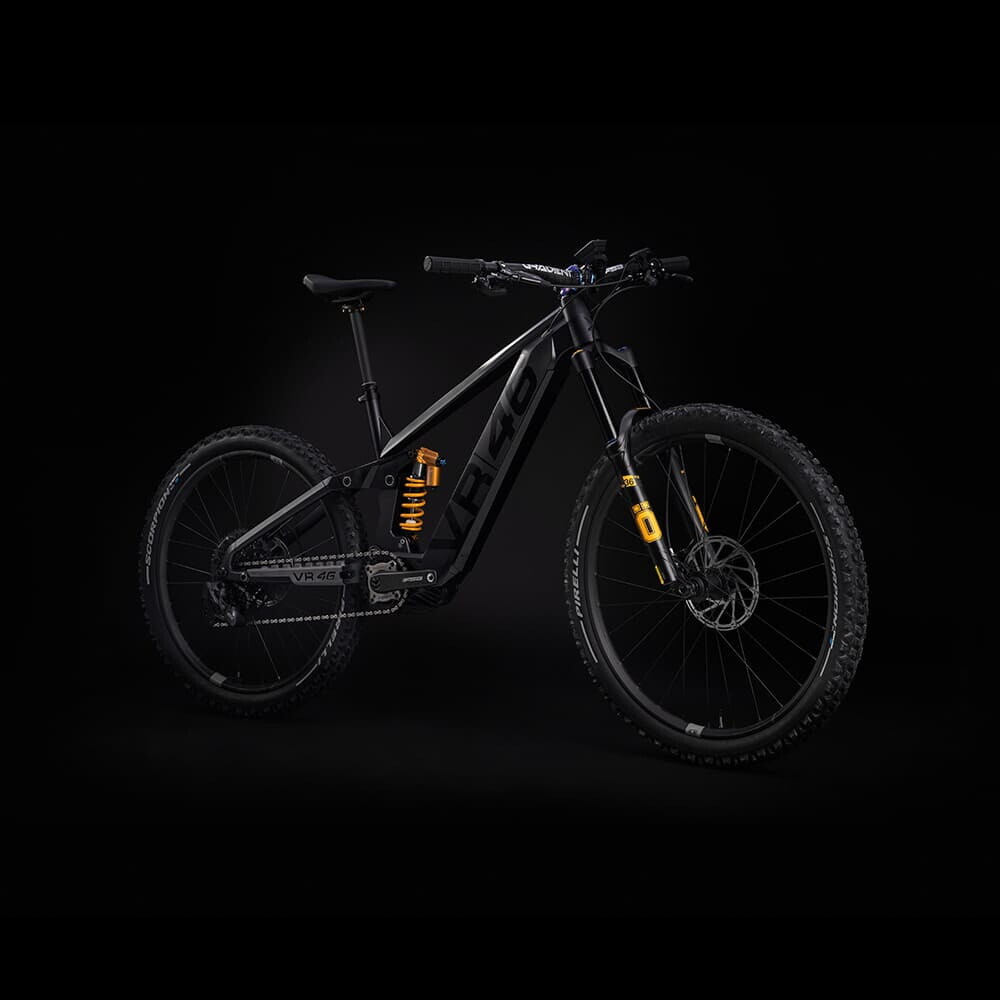 The VR46 E-MTB is a pedal-assisted bicycle with a modern design and cutting-edge technology, designed in Italy for all sorts of uses ranging from mountain biking to enduro.
