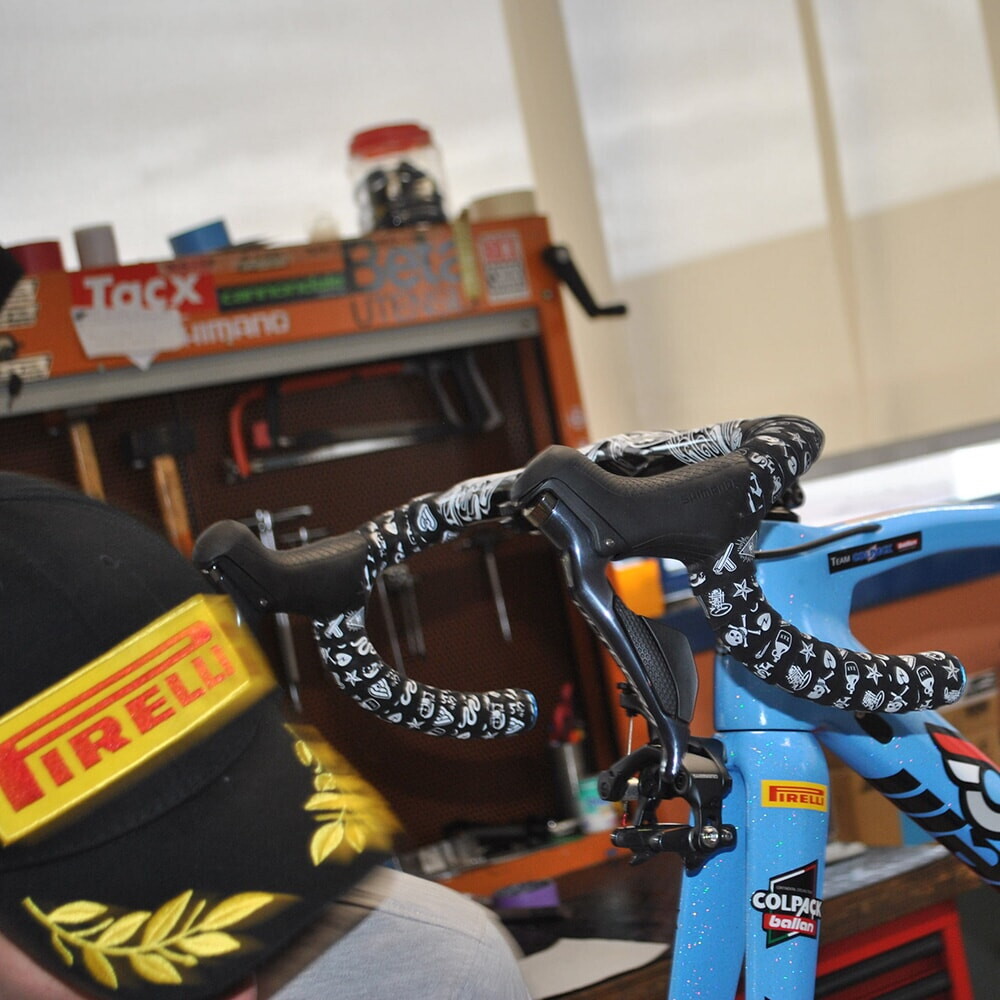 First of all, you need to check that there is no air inside the system: the symptoms of the presence of air are a very long travel time on the lever, a continually changing braking bite point, lack of braking entirely, or movement of only one of the pistons located in the calliper. “In the event that air is present, you need to bleed the whole system, but it is better to get a mechanic to do it”, suggests the expert from the Colpack Ballan team, as in the case of the housings and brake cables for rim brakes. The reason? “Because every system has its dedicated bleed kit and also the brake fluid inside is specific to each manufacturer”. However, you can still try what Stefano calls “a half bleed”, that is to say getting rid of the air and replacing it with brake fluid, by acting on the lever with a small glass, but being particularly careful not to let any brake fluid fall on the pads: “they are like sponges; they soak it up and are ruined”.