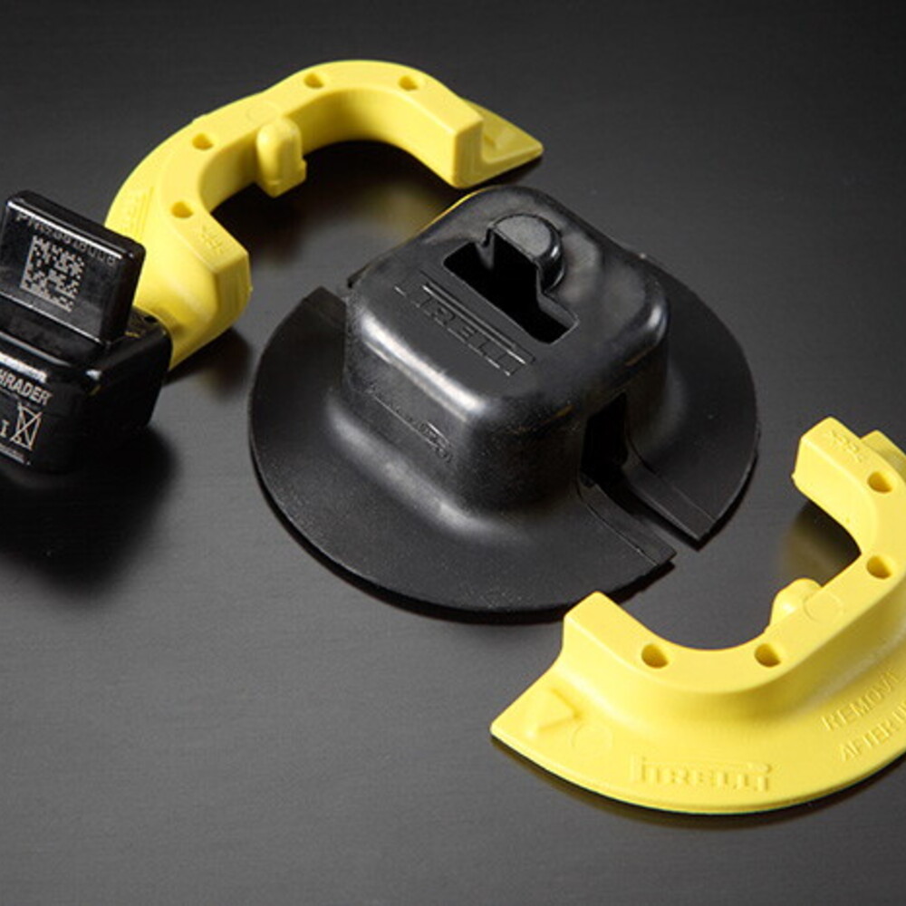 Cyber Tyres are equipped with special sensor developed exclusively for Pirelli. This sensor is actually a computer with the same processing power as a smartphone, but the whole device is only slightly larger than an ordinary one-euro coin. It includes a newly designed radio transmitter able to transmit the data gathered from the tyre directly to the other electronic devices in the car (after the appropriate modifications, of course). The sensor is able to gather data on both tyre temperature, pressure and type and on triaxial acceleration (i.e. the force of acceleration on three axes—longitudinal, lateral and radial—during contact of the tyre with the road surface), gathering data literally on every single rotation of the wheel.