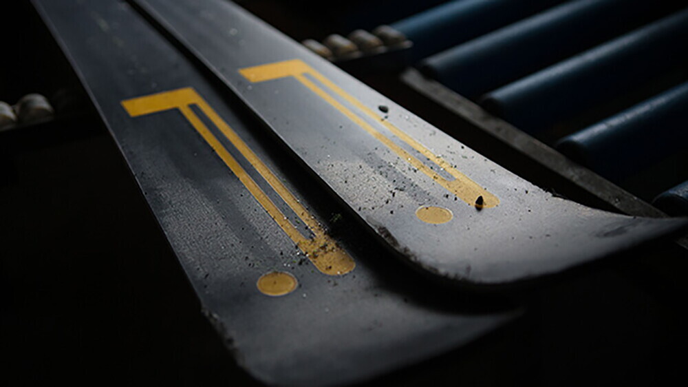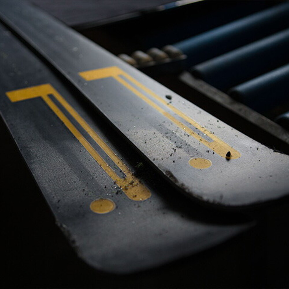 This new ski is in fact built by the craftsmen at Blossom using the sandwich technique, which consists in overlapping a series of layers of various materials, which are then heat-sealed in a furnace using special adhesives. The Sport Carve Ski has a wooden core, which is supplemented by a graphite sole, a double layer of Titanal with a stabilising effect, and lastly a fibreglass layer, a special triaxial glass fibre that fosters the torsion of the ski during maximum stress on turns.