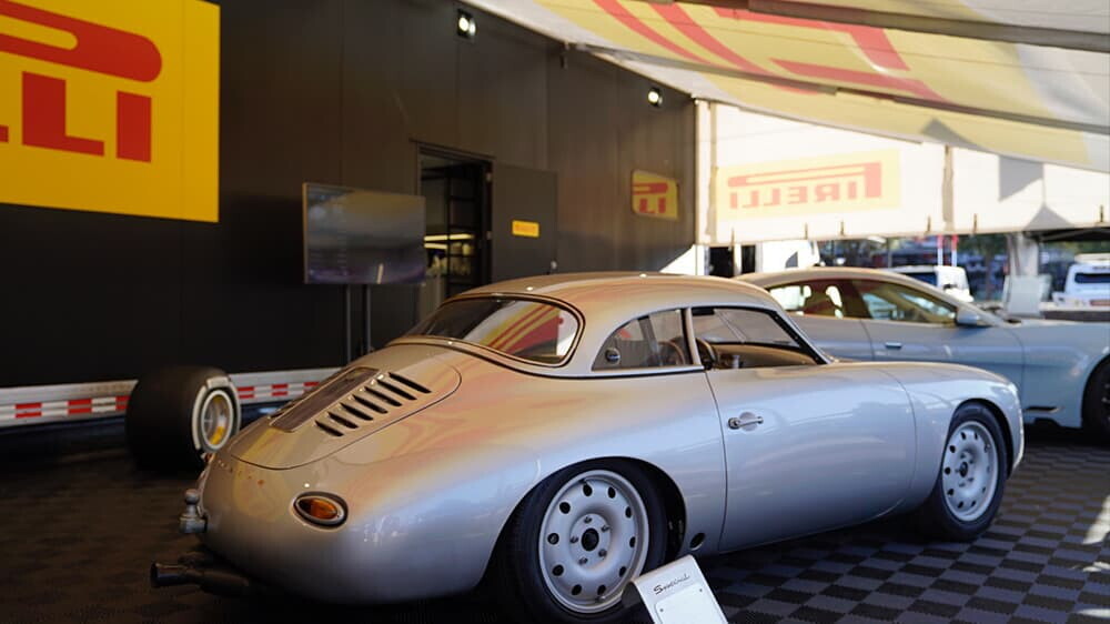 Outside, Pirelli has a booth showing the versatility of its P Zero tire applications on three vehicles: the Karma Revero in Balboa Blue (sporting P Zero 265/35R22, 285/40R22), the 1964 Porsche 365 “Emory Special” (P Zero Rosso) by Rod Emory and new Dodge Demon custom build by SpeedKore designed especially for high performance on track days (therefore equipped with Pirelli P Zero Corsa 315/30 ZR20 tires front and rear).