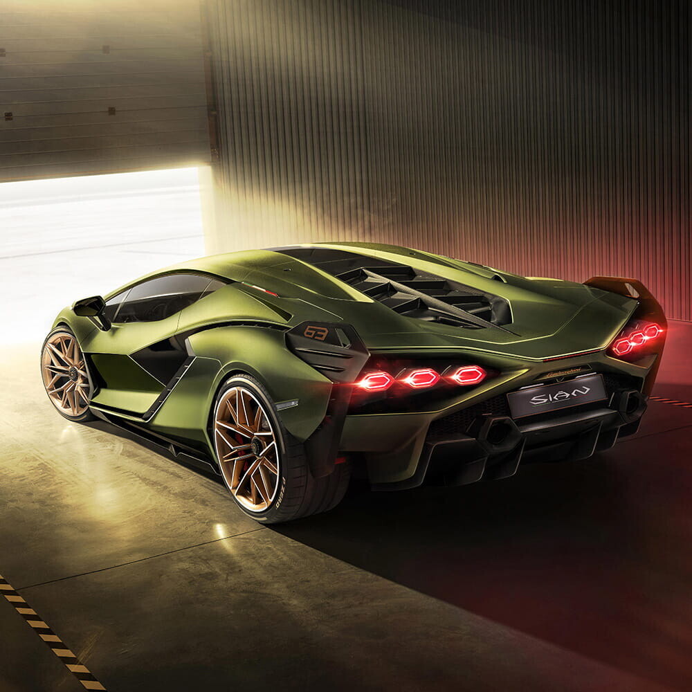 The Sián is the Italian car manufacturer's first step towards electrification and anticipates the new-generation Lamborghini V12 engines. It has a futuristic design and implements unique hybrid technologies with a supercapacitor and direct connection between electric motor and axles. The pioneering supercapacitor technology was originally mounted on the Lamborghini Aventador and has now been developed to store ten times more power.