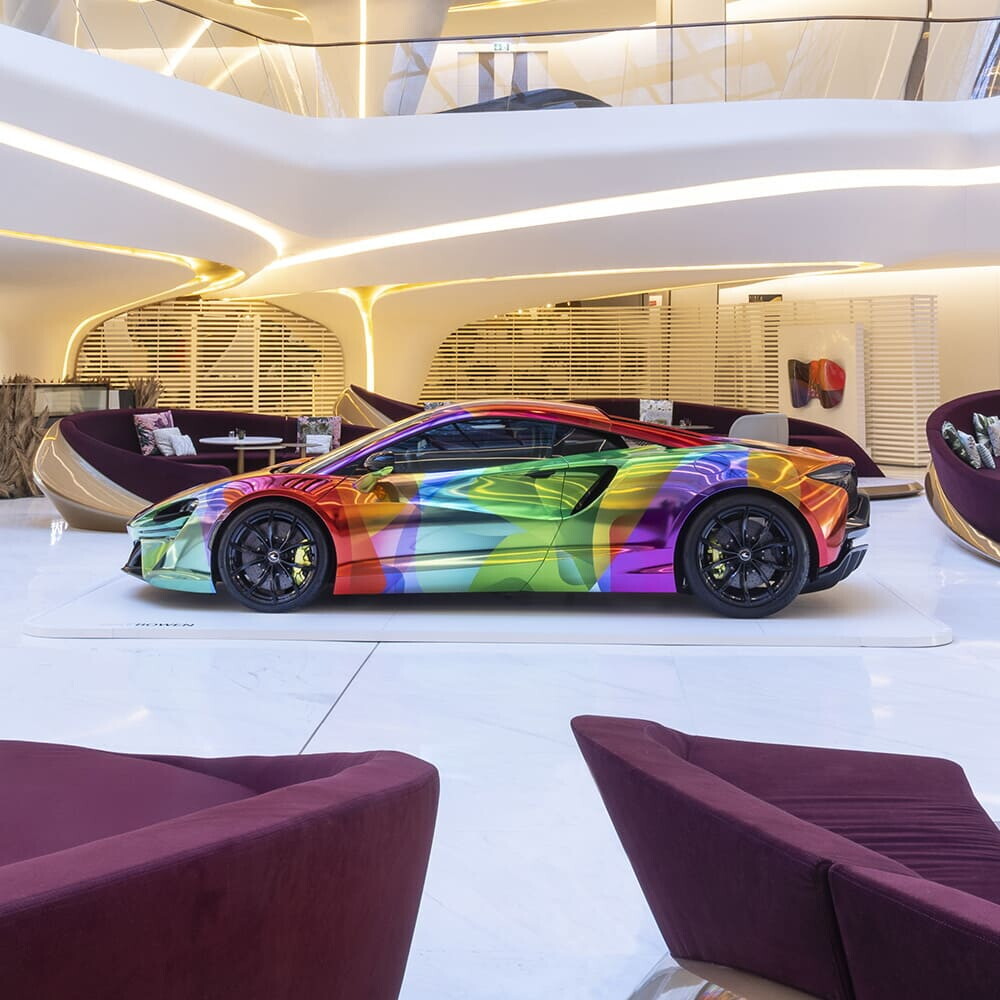 McLaren has celebrated the arrival of its new Artura hybrid supercar with a one-of-a-kind “art car”, created and conceived by Nat Bowen: a leading British abstract artist known for her vibrant and colourful creations. The multicoloured car, which was also exhibited at the ME Dubai Hotel, was the star of a unique project that explored the concept of ‘chromology' (the psychology of colour) as well as the future of art.