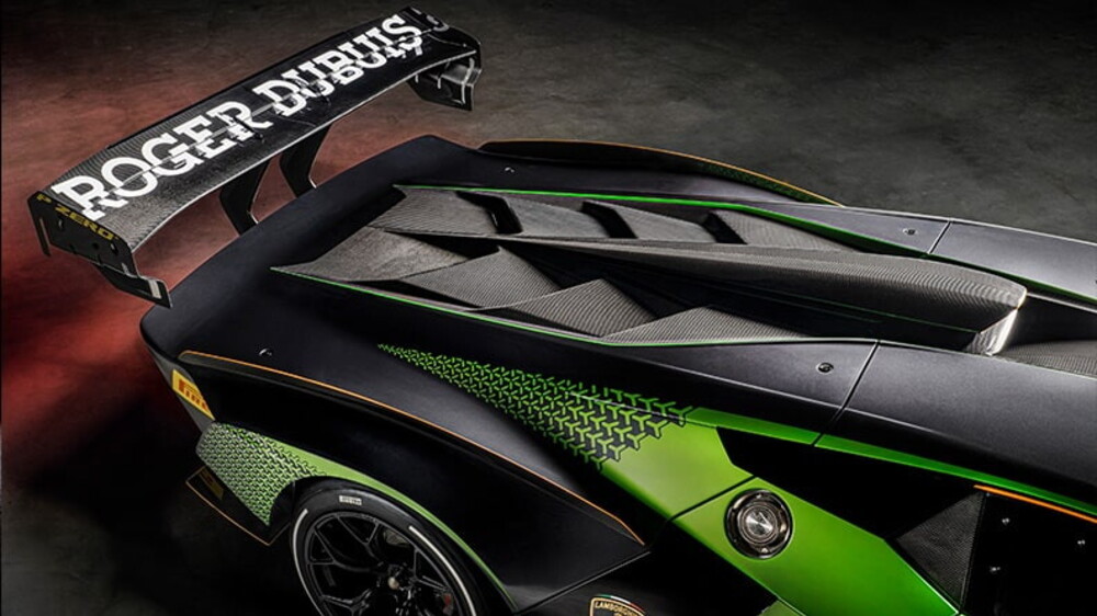 The aerodynamics of the Essenza SCV12 have been honed by Lamborghini's race team, the famous ‘Squadra Corse', using experience gained from the top levels of GT racing. The result is aerodynamic efficiency and downforce that is actually superior to a GT3 car. The bonnet incorporates a double air intake with a prominent central rib, as also seen on the racing version of the Huracán. This separates the hot air coming from the radiators and channels cold air towards the air scoop in the centre of the roof, force-feeding the V12. The front of the car also features a massive splitter, and there's an even bigger diffuser at the back. There's been a huge focus on aerodynamics in every area, helping it pierce the horizon as quickly and cleanly as possible. Finally, you get a fully-adjustable carbon rear wing in order to play with different set-ups. This car positively oozes racing DNA.