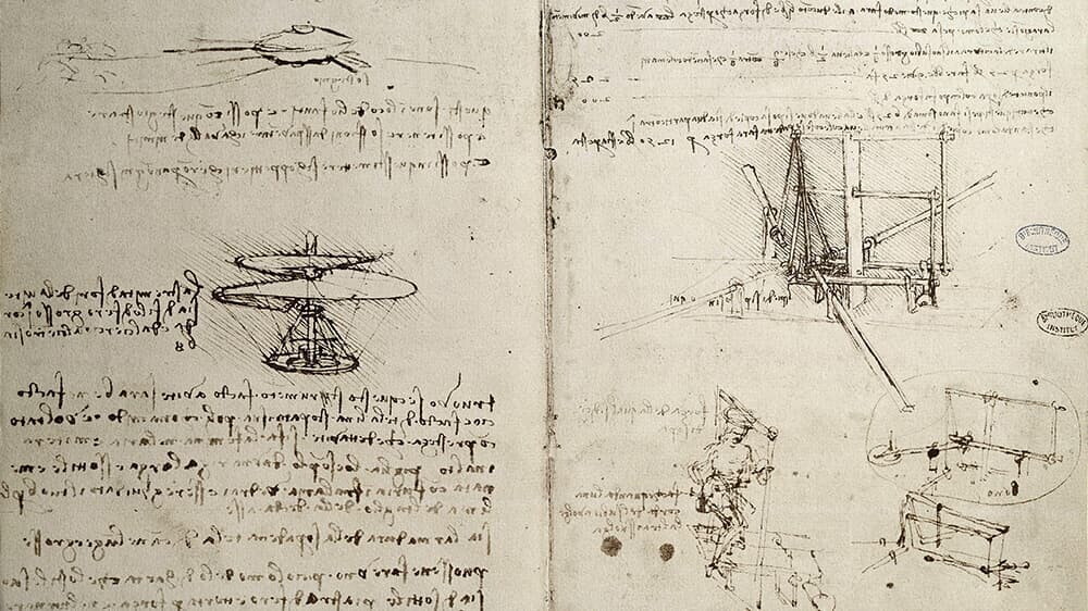 There were however several other inventions whose precise aim was to move humans, and in even more unusual ways compared to a mobile cart. As you know, Leonardo was convinced that man, with the help of science, could fly. So he studied the fall of heavy bodies, the movements of air and the flight of birds, and conceived structures that reproduced these characteristics. The result was a bizarre - but functioning - parachute, the prototype of a flying car that was allegedly built and tested by a friend of the inventor and a project reminiscent of a modern glider. He is also the inventor of the "aerial screw", which can be considered a progenitor of the helicopter due to its large "propeller" that was supposed to screw into the air on receiving the thrust of a spring motor. But Leonardo did not want man to reach the sky alone, but also to delve into deep water: some of his sketches also include the draft of a diver, a life jacket and webbed gloves to facilitate swimming. In an effort to prove that the Renaissance man was the link between the earthly and the divine, Leonardo da Vinci definitely played his part. And we now also travel thanks to him, thanks to the car and to the imagination.
