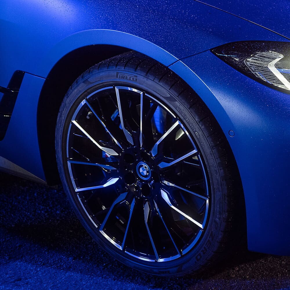 With the BMW i4 M50, the German car manufacturer's sports department also travels down the full-electric path for the first time. There are two engines, thanks to which the car can reach 544 HP (400 kW) with an acceleration of 0-100 km/h in just 3.9 seconds. To handle the high performance of this vehicle, as well as to meet the requirements common to all battery-powered cars, Pirelli developed a P Zero with Elect technology, recognisable by the markings on the tyre's sidewall. Beside the star that identifies all tyres produced as original equipment for BMW models, the Elect logo indicates that the tyre is specifically for BEV and PHEV cars, which are distinguished by instantaneous torque delivery, super silent operation and increased weight due to the presence of batteries. The structure of the tyre designed by Pirelli is reinforced to support the car and deliver maximum performance even during extremely sporty use. In addition, the special high-grip tread compound is designed to provide high levels of grip, ensuring efficient and precise driving.
