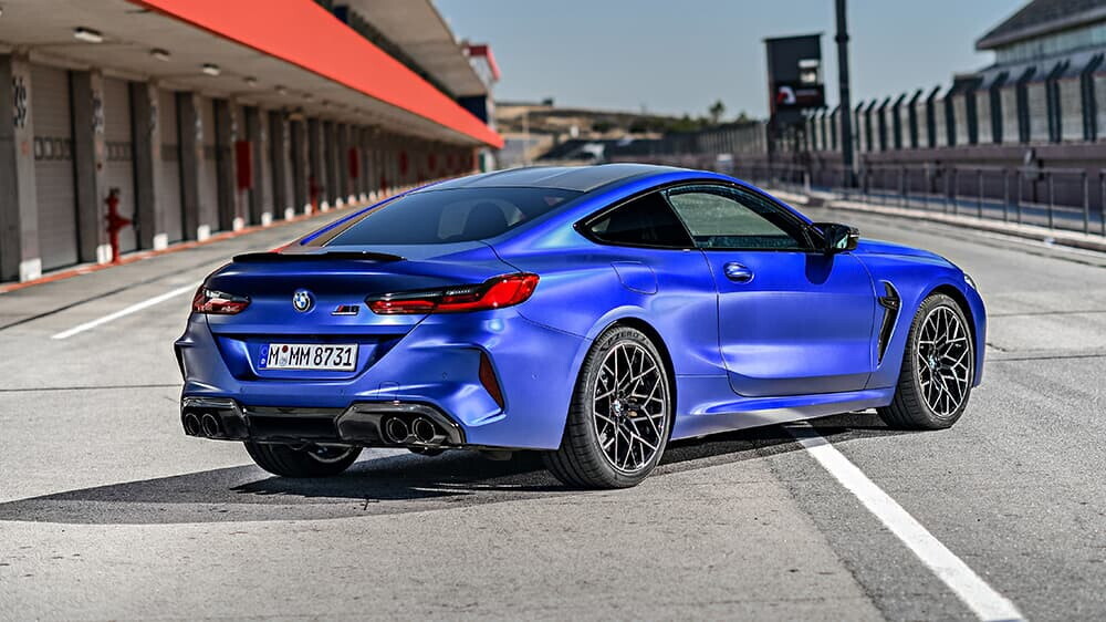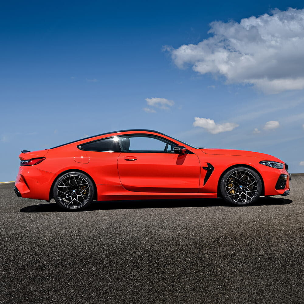 The model-specific chassis technology has been designed and tuned with the specific demands of track use in mind. The performance-focused character of the engine, transmission and chassis allows the new BMW M8 Coupe and new BMW M8 Convertible to power from 0 to 100 km/h (62 mph) in 3.3 / 3.4 seconds. The new BMW M8 Competition Coupe sprints from 0 to 100 km/h (62 mph) in 3.2 seconds, the new BMW M8 Competition Convertible in 3.3 seconds.