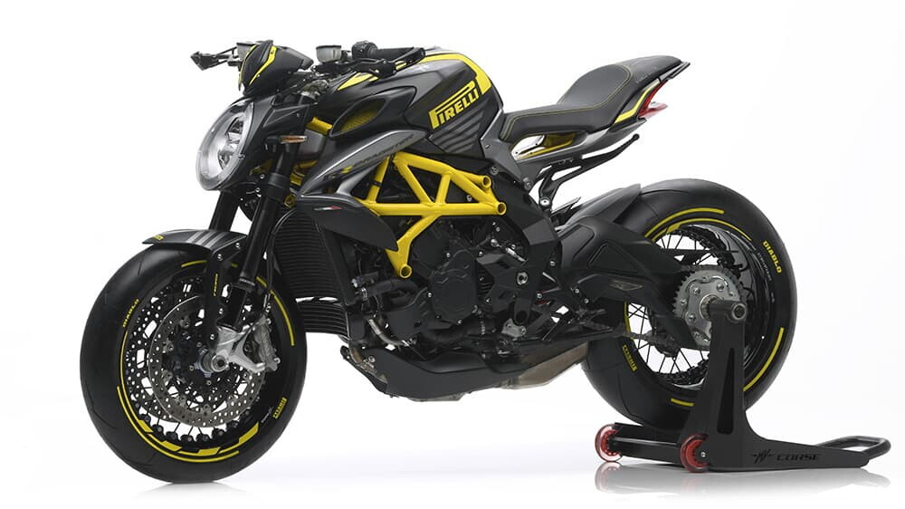 Demonstrating the partnership between the unmistakable MV Agusta and Pirelli brands even more eloquently is the option to equip the bike with Diablo Supercorsa SP tyres featuring coloured sidewalls: these have a yellow or blue band depending on the colour version of the bike. From the lab – or rather the craft workshop – to the road, the Dragster 800 RR Pirelli is designed to stand out and create excitement.
