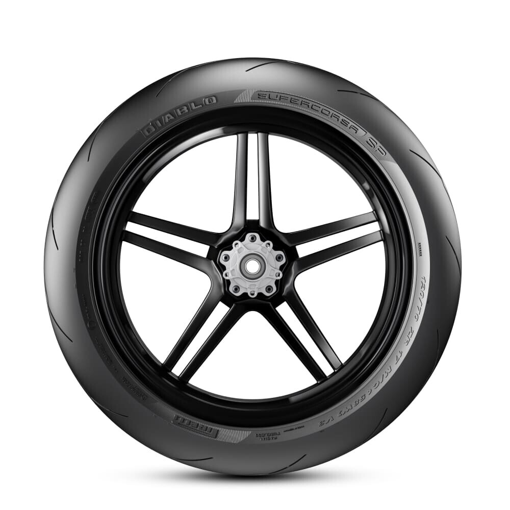 Pirelli DIABLO SUPERCORSA SC tyres are grooved racing tyres designed to enhance the performance of a motorbike on the track. They are so specialised that they are available in four compounds: SC0, SC1, SC2 and SC3 for the rear wheel and SC1, SC2 and SC3 for the front wheel. The different specifications range in sequence from soft (SC0) to hard (SC3).