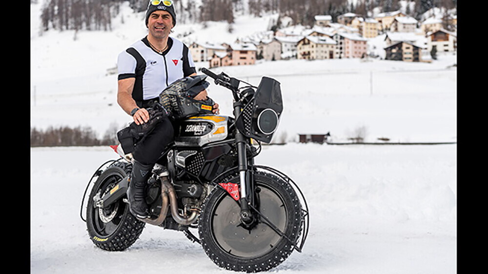 Yet another reason for Ducati and Pirelli to join forces and improve their respective products: the new SCORPION™ RALLY STR tyre was used and developed especially for the new Ducati: the Desert Sled born between the desert and mountains of California is an openly off-road version inspired by the off-road motorcycles that made history in the United States during the sixties and seventies. On this the model, equipped with unique SCORPION™ RALLY STR studded tyres for the event, Kristian Ghedina tested the new set during a fun afternoon that combined his experience with snow and bikes and demonstrated the outstanding performance of both products. The briefing was simple: “Have fun on the snow and tell us what you think”. The former national athlete enjoyed himself during this unusual and entertaining experience, on an equally thrilling motorcycle capable of unleashing its 75 HP on top of a coat of snow. Ducati's decision was no coincidence: not only a business agreement, a 100% supply partnership was reached consolidating the bond formed between the two giants a few years ago. Pirelli provided the manufacturer based in Borgo Panigale with its best and most innovative product, which in turn mounted it on its latest creation, giving life to a joint development that caters for their mutual needs. The Scorpion Rally Str comes in ten different sizes, including an exclusive and customised set for the new Scrambler. It also ready to become a top-of-the-range product on a broader market.
