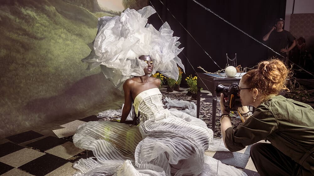 Emma Summerton ha retratado a las estrellas de la edición 2023 en estudios de Nueva York y Londres durante los meses de junio y julio de 2022. Ha contado para ello con la ayuda de la Amanda Harlech, la consultora británica y musa durante muchos años de John Galliano y Karl Lagerfeld. Del diseño de los sets, todos ellos con atmósferas repletas de detalles, se ha encargado Viki Rutsch; el estilista Eugene Souleiman ha aportado su particular toque de magia con un despliegue de alas, tocados ingeniosos y peinados voluminosos y vaporosos, y Hiromi Ueda ha puesto el colofón al mando del maquillaje. El resultado de esta combinación de artistas se ha descrito por quienes han estado presentes como algo “mágico”.