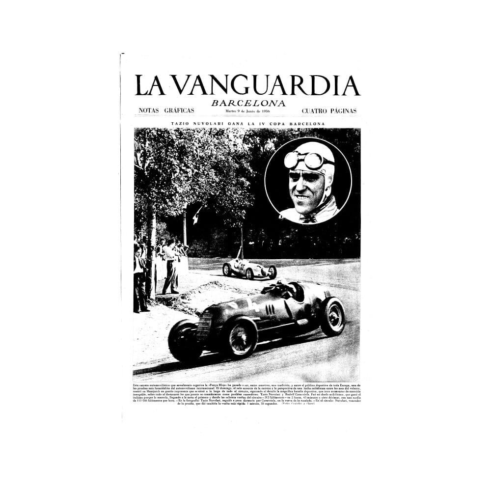 Tazio zarpó con dirección a Barcelona el 11 de octubre de 1923 a bordo del vapor “Guadalquivir”. Llegaba con la etiqueta de aspirante frente la potente armada Talbot, que lideraba el francés Albert Divo. Suyo fue el triunfo el día 21 del mismo mes en Vilafranca, en la que Nuvolari, afectado por problemas mecánicos, acabó quinto tras una épica remontada. Tampoco le acompañó la montura una semana más tarde en la prueba motociclista de Terramar, a la que concurrió al manillar de una Borgo. Pero Nuvolari estaba destinado a dejar huella, como demostró en la carrera de voiturettes que cerraba la semana inaugural del óvalo. Dominada por los Talbot, con Dario Resta al frente, Nivola cruzó la meta en cuarto lugar tras una frenética recuperación. Lo recuerda este extracto del diario Mundo Deportivo correspondiente al 5 de noviembre de 1923: “Fue solo Nuvolari el que durante largo rato de la carrera, con una valentía y un virtuosismo extraordinario, libró un emocionante duelo contra adversarios que eran más veloces, pero no más ni acaso tan audaces como el italiano para quien fueron ayer las más cálidas ovaciones”. Nuvolari había dejado huella.