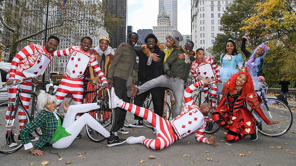 La mattina della presentazione del Calendario Pirelli 2018 alcuni ciclisti vestiti con i costumi della fiaba de “Le Avventure di Alice nel Paese delle Meraviglie” sono stati avvistati a Central Park.