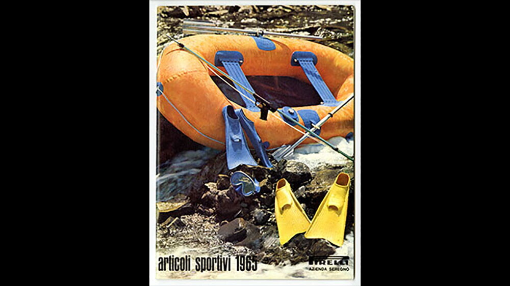 Una delle ragazze col costume in Lastex -quella di pagina 43- sembra poi intenzionata a scendere in acqua su un Nautilus arancione. Con Pirelli, infatti, al mare possono succedere molte cose. Ad esempio prendere il largo su un battello pneumatico. Il “gommone” -lo produce la consociata Azienda Seregno- è la motorizzazione di massa riflessa sull'acqua: libertà, avventura, voglia di muoversi via dalla pazza folla. Ai tempi del Lastex e di Gianna Manzini il gommone Pirelli si chiama Nautilus, è di un color arancione squillante e le ragazze a bordo sorridono con aria innocente e felice. Gommone specchio dei tempi: di lì ad un decennio sarà diventato Laros, di colore grigio e blu, e le ragazze a bordo guarderanno il fotografo con un'espressione seria e sicura di sè.