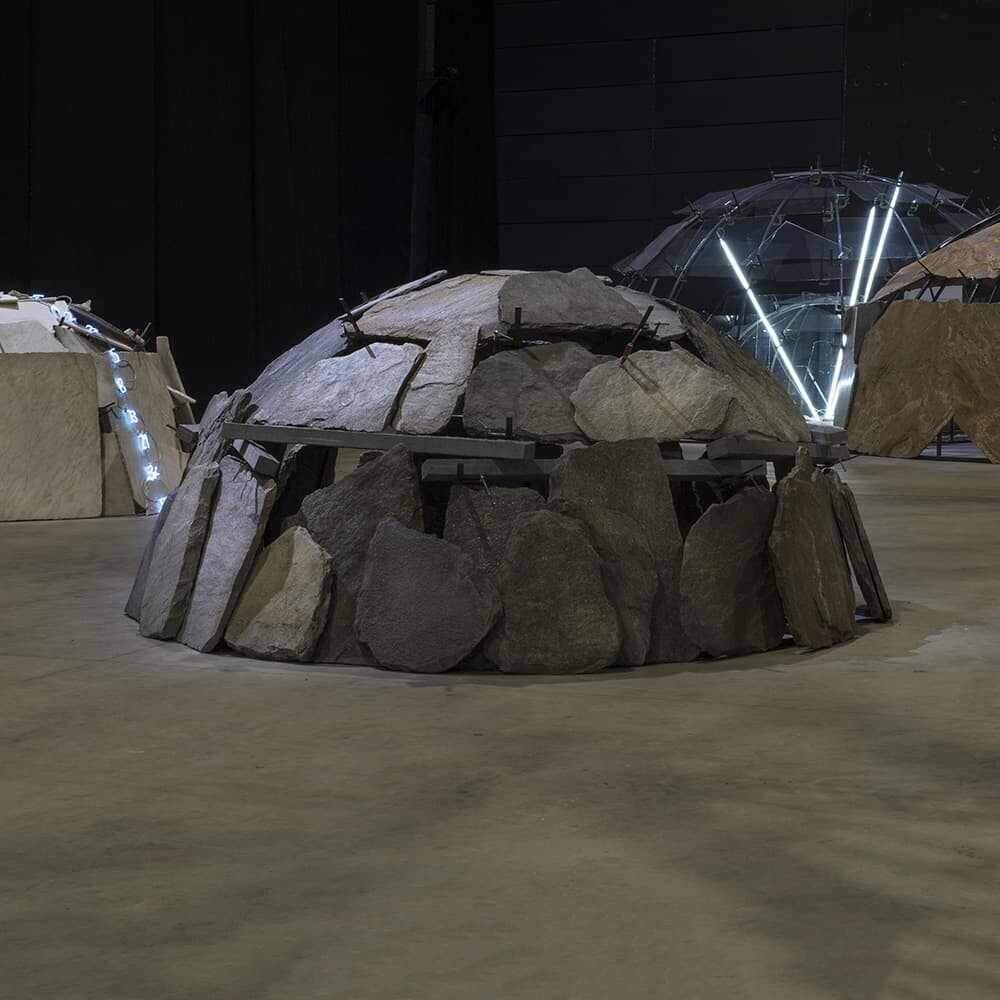 A cura di Vicente Todolí, in collaborazione con la Fondazione Merz di Torino, “Mario Merz. Igloos” si presenta come la prosecuzione di un percorso inaugurato nel 2017 con la grande retrospettiva dedicata agli Ambienti spaziali di Lucio Fontana, un progetto che nel suo complesso intende offrire ai visitatori la possibilità di esplorare in prima persona le grandi opere che hanno cambiato la storia dell'arte, riunite e ricostruite a Milano per la prima volta. Sfruttando le caratteristiche uniche degli spazi dell'Hangar, gli igloo provenienti da numerose collezioni private e museali internazionali – tra cui il Museo Nacional Centro de Arte Reina Sofía di Madrid, la Tate di Londra, la Nationalgalerie di Berlino e il Van Abbemuseum di Eindhoven – verranno installati all'interno e all'esterno dell'edificio, in un dialogo ininterrotto tra di loro, con lo spettatore e con lo spazio. In questo senso, la retrospettiva si presenta come la continuazione di un discorso in divenire, anche in senso simbolico. L'ultimo ambiente spaziale di Lucio Fontana è del 1968, anno del primo Igloo di Merz: un passaggio di testimone che invita a individuare le tracce dell'eredità del pittore, ceramista e scultore italiano, argentino di nascita, nel lavoro del grande “alchimista” – come lui stesso amava definirsi (l'uso del neon e la volontà di coinvolgere lo spazio, prima di tutto).