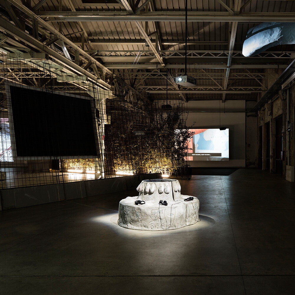 Tema centrale della mostra insieme all'identità, ça va sans dire, è il linguaggio. L'artista, come fa con qualsiasi altro tipo di convenzione, mette in discussione anche – e soprattutto – il significato delle parole. In altri termini: traduce. Prouvost tradisce per mettere in difficoltà quella forma nata dall'abitudine e svelarne le parti vergini, in un costante meccanismo sinestetico: trasforma il testo in immagini, traspone un film in scultura e così via, fino a generare una confusione interpretativa totale – anche, letteralmente, attraverso la traduzione sfalsata dal francese (la sua lingua madre) all'inglese (idioma assimilato nei quasi vent'anni trascorsi a Londra). Ed è qui che questi due grandi percorsi si intersecano: chi sono io se non so più capire, se non so più percepire univocamente qualcosa, se mi allontano troppo dalle mie coordinate cognitive? Sembra essere questa la domanda che ci pone indirettamente l'artista, e con un sorriso complice allo stesso tempo sembra rassicurarci: esistiamo ancora, anche se siamo confusi, anche se stiamo sognando, anche se per un attimo non sappiamo più esattamente chi siamo, anche se ci siamo persi in un tunnel, come il presunto suo nonno. Quindi andate e perdetevi tutti: “You are off to better places, trust us”.