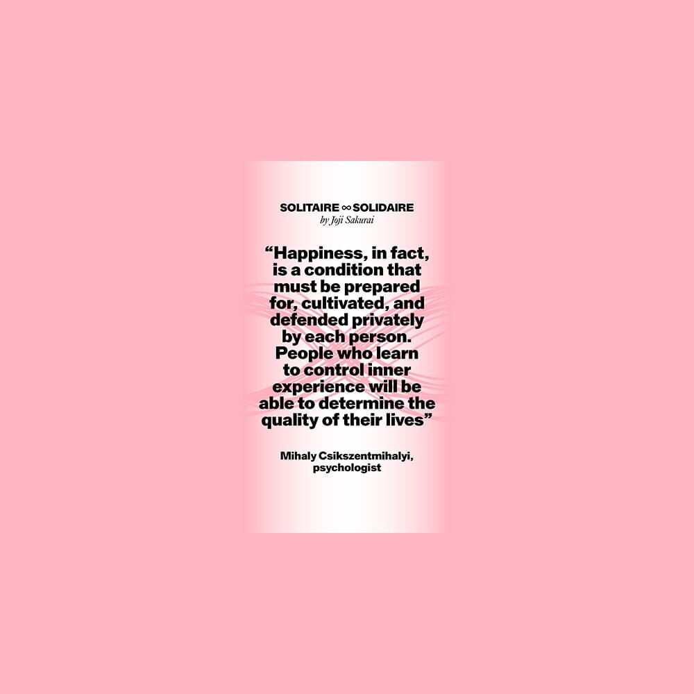 "La felicità non capita, non dipende da eventi esterni", scrive. "La felicità è anzi una condizione a cui prepararsi, da coltivare e difendere nel privato. Le persone che imparano a controllare l'interiorità riusciranno a determinare la qualità della loro vita."