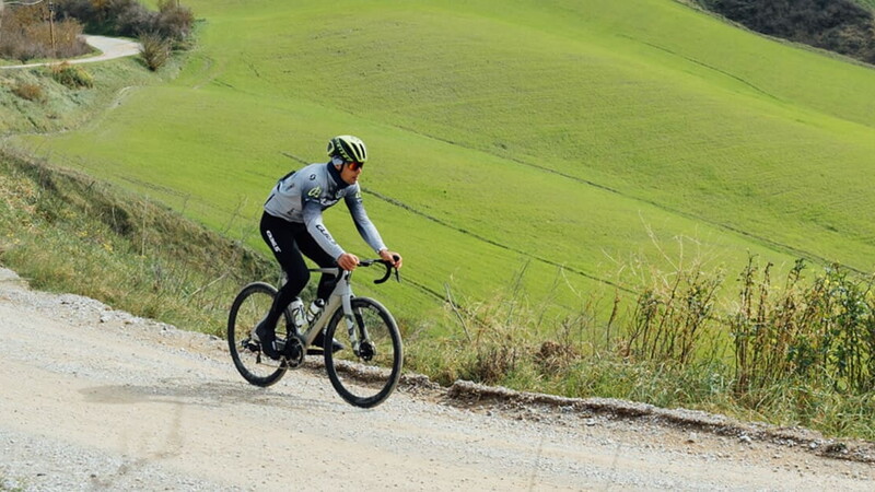 Se questo sterrato fosse una canzone, probabilmente sarebbe una traccia dell'album “The Division Bell” dei Pink Floyd, una lunga sessione progressive dove l'immensità delle colline corre a perdita d'occhio lungo la cresta della strada arida, polverosa, sperduta nel nulla. L'uomo e il ciclismo sono soli qui, in una landa desolata quasi sempre battuta dal vento, dove le ombre malinconiche si disegnano nere sullo sterrato più bianco del bianco nell'abbacinante sole del primo pomeriggio. Come dice il nome, questo non è un luogo per l'azione, è fatto per la contemplazione e la preghiera, sacro e profano che si mescolano, come molte volte succede nel bel mezzo della competizione. Così lontano da Siena – e da tutto – il settore otto ti aspetta per metterti davanti a te stesso, nudo. Infernali colline infinite, il silenzio di un ritmo alienante che nessuno riesce a sentire: il deserto di un altro pianeta.
