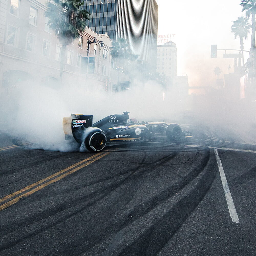 Presenti alcune star della F1: Valtteri Bottas, Daniel Ricciardo e Max Verstappen, che hanno fatto sosta a Los Angeles per salutare I propri fan prima di raggiungere il Texas. Insieme ai loro team - Mercedes AMG Petronas Motorsport, Aston Martin Red Bull Racing e Renault F1 Team - hanno portato il brivido della F1 sulle strade hollywoodiane, sfidandosi in una gara di donuts e testa coda.