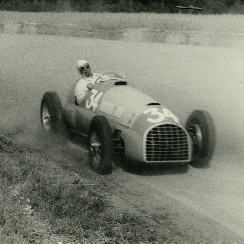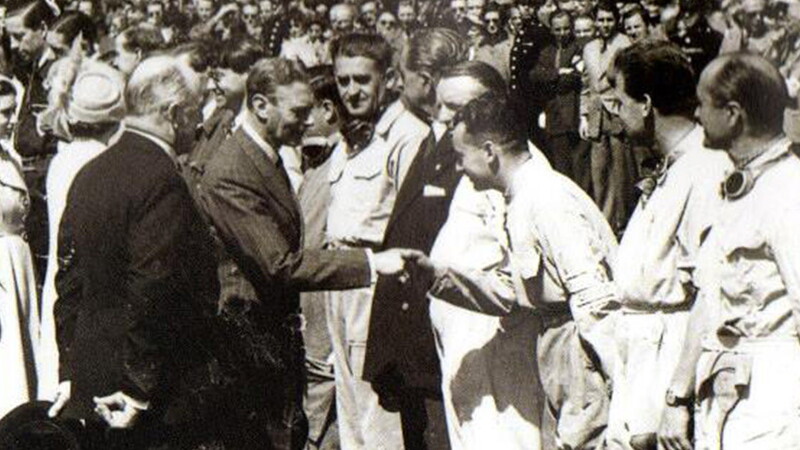 La fotografia sembra uscita da una galleria d'arte storica. Un senso di spazio allargato, indisturbato. Uno spicchio di tribuna sullo sfondo, lontana. La Regina Elisabetta, appena 24enne, posa insieme ai piloti che di lì a pochi minuti daranno vita al primo campionato iridato di Formula 1®. Lei, una ragazza. I piloti, da Juan Manuel Fangio che quella gara vincerà, per poi soccombere in quel primo campionato del mondo all'italiano Nino Farina, vecchissimi, al confronto.