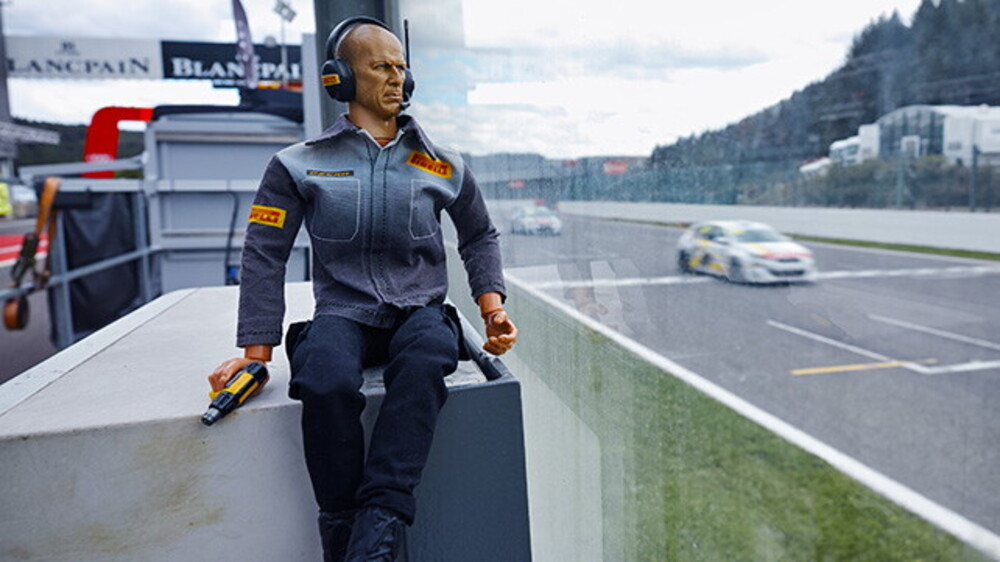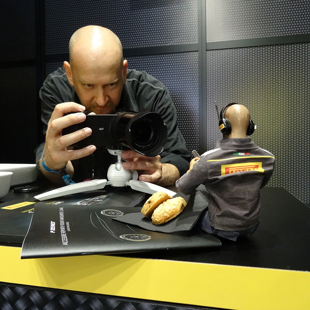 “Io sono solo il suo fotografo (scherza). Sono nel mio habitat naturale quando fotografo i miei personaggi, mi piacciono le reazioni della gente, mi sento come un bambino. Ho colto l'opportunità di stare tutto il giorno nei box delle case auto, sul circuito, nella Fitting Area Pirelli e vi garantisco che ci sono molte cose da vedere, specialmente se la tua prospettiva è quella di un'action figure di 30 cm”.