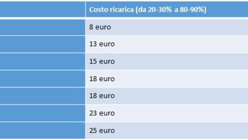 Come abbiamo visto sono disponibili diverse soluzioni per ricaricare i veicoli elettrici, dalla presa domestica alla wall box, fino alle colonnine pubbliche e private in corrente alternata o continua sopra i 22 kW. Ecco alcuni prezzi indicativi, per capire quanto costa ricaricare l'auto elettrica in Italia, arrivando dal 20-30% all'80-90% circa.