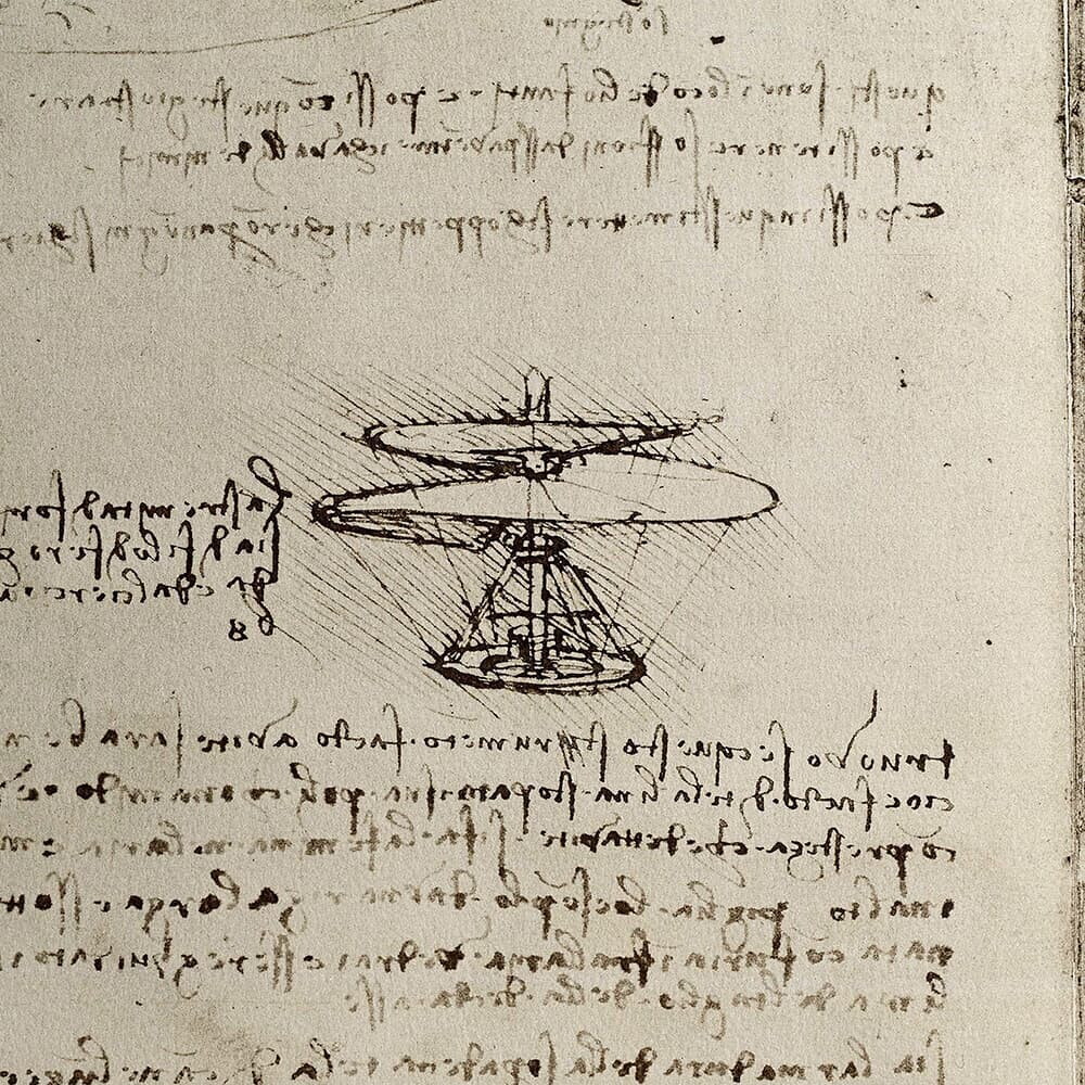 Ci furono invece diverse altre invenzioni che avevano proprio lo scopo di spostare gli esseri umani, e in modi ben più inconsueti rispetto a un carro-mobile. Com'è noto, Leonardo era convinto che l'uomo, con l'aiuto della scienza, avrebbe potuto volare. Così studiò la caduta dei gravi, i moti dell'aria e il volo degli uccelli, e ideò delle strutture che ne riproducessero le caratteristiche. Il risultato fu un bizzarro – ma funzionante – paracadute, un prototipo di macchina volante che pare fu costruito e testato da un amico dell'inventore e un progetto che ricorda un moderno deltaplano. Sua anche la “vite aerea”, che può essere considerata un progenitore dell'elicottero per via della grossa “elica” che avrebbe dovuto avvitarsi nell'aria dopo aver ricevuto la spinta di un motore a molla. Ma Leonardo non voleva che l'uomo arrivasse solo in alto nel cielo, ma che potesse calarsi agevolmente anche in acque profonde: compaiono tra i suoi bozzetti anche lo schizzo di un palombaro, di un salvagente e di guanti palmati per facilitare il nuoto. Nel tentativo di provare che l'uomo rinascimentale fosse l'anello di congiunzione tra il terreno e il divino, Leonardo da Vinci ha di certo fatto la sua parte. E noi oggi viaggiamo anche grazie a lui, con le auto e con la fantasia.