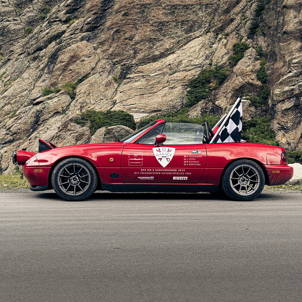 In occasione del trentesimo anniversario, la Miata è tornata sotto i riflettori scommettendo su un nuovo record. Una MX-5 di prima generazione è stata guidata per 12 ore cercando di percorrere il più alto numero di tornanti sulla Kaunertaler Gletscherstraße, una strada panoramica che conduce all'imbocco del ghiacciaio austriaco Kaunertal. Si sono alternati alla guida la pilota Cyndie Allemann, il pilota della MX-5 Cup Jan Spiess, il test driver di Auto Bild Stefan Novitzki e il pilota di rally Niki Schelle, sotto stretta supervisione dell'Hamburg Record Institute for Germany. Dopo le 12 ore, la missione era completata: 2.900 tornanti percorsi, circa 1.400 in più del record precedente.