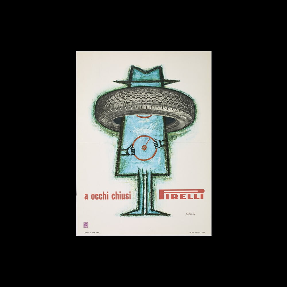 E' dedicata a un altro Cinturato, il modello CN336T, “Ad Occhi Chiusi” (1961) la più iconica campagna advertising di Riccardo Manzi; nella pubblicità gli occhi del guidatore sono oscurati da un pneumatico che impedisce la visuale e solo l'uso di pneumatici Pirelli garantisce la totale sicurezza della guida. Lo stile è ironico e caricaturale, il tratto rapido e istintivo: tutte caratteristiche che rendono immediatamente riconoscibile la firma dell'autore.