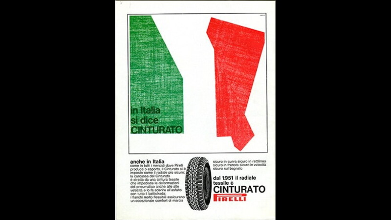 “Dopo cinque lunghi anni di studi, abbiamo prodotto e posto in vendita un nuovo pneumatico chiamato Cinturato. Il particolare fondamentale che caratterizza la sua struttura è dato da una robusta cintura di tessuto situata tra il battistrada e la carcassa; quest'ultima presenta una solidità tale da resistere in modo superiore all'usura dell'impiego”. Così, nel 1952, Pirelli annunciava la nascita del Cinturato, destinato a rivoluzionare il mondo dei mezzi di trasporto su gomma. Brevettato nel 1951 a partire dagli studi dell'ingegner Luigi Emanueli, il Cinturato si afferma sul mercato internazionale nel corso degli anni Sessanta come vera e propria icona del boom economico e dell'Italia in movimento. L'affermazione del primo pneumatico radiale Pirelli passa anche attraverso le fortune delle grandi campagne pubblicitarie che, tra gli anni Cinquanta e Sessanta, l'azienda affida alla creatività di affermati designer tra cui Ezio Bonini, Riccardo Manzi, Alessandro Mendini, Pino Tovaglia, Bob Noorda.