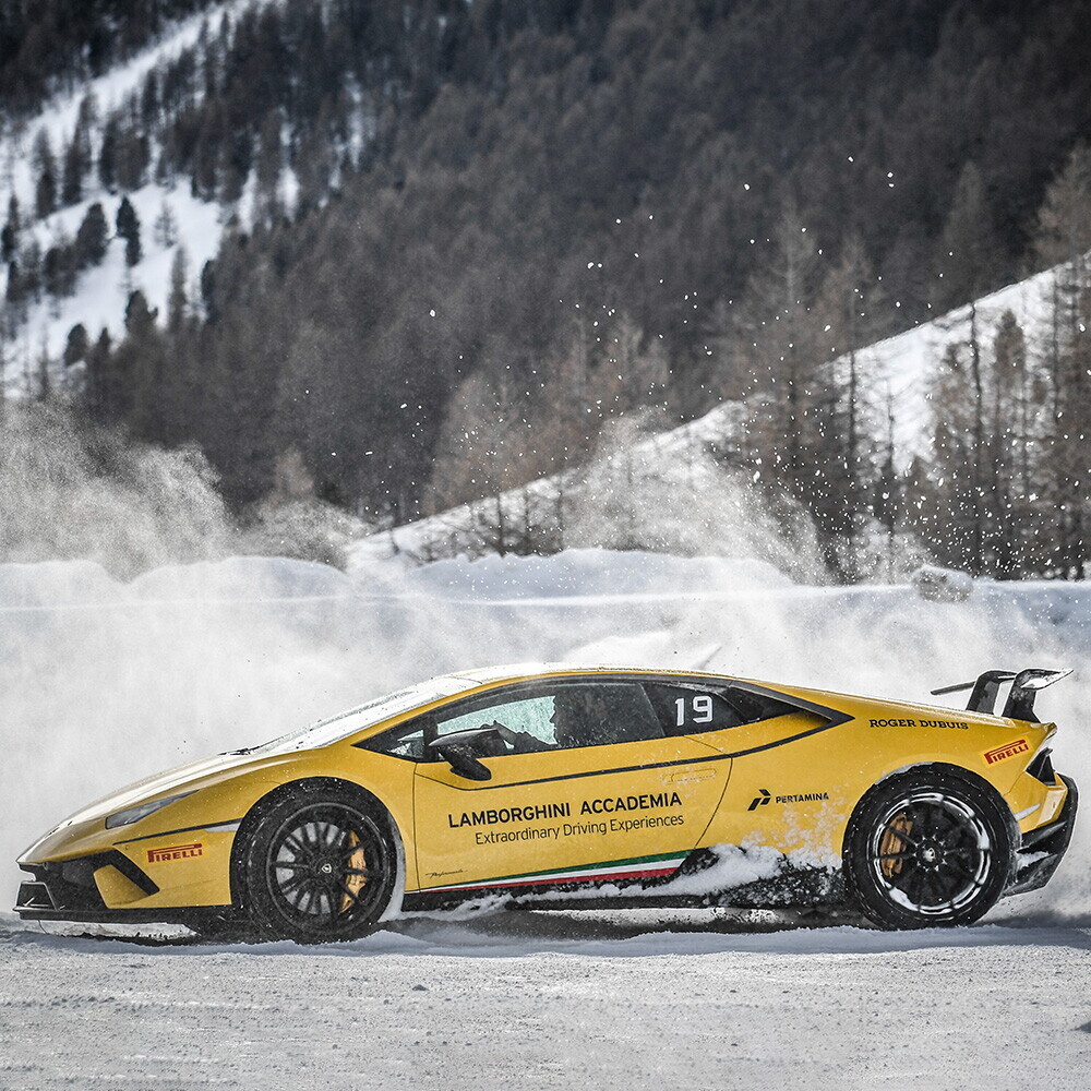 “Ho maturato l'interesse per la velocità quando ero un bimbo. Guidavo la moto, ma salivo anche sul kart”, ricorda Ottavio jr, ultima generazione di una famiglia e di un'azienda, Missoni, che a buon diritto merita l'epiteto di “Lamborghini delle maison di moda”. “E se per me la moto è innanzitutto esplorazione, vedo invece l'auto soprattutto come uno speciale mezzo di condivisione”. La Winter Accademia insegna a non temere il freddo. E a governare la potenza di un V12 in qualsiasi situazione. In realtà, ai 700 cavalli e oltre di una Lamborghini Aventador, Ottavio Missoni già in passato aveva misurato la temperatura. Ma domare un Toro razza “Lambo” ad alta quota e su un ghiacciodromo, con la potenza bruta che combatte contro un grado di aderenza ultrasottile e un team di esperti che ti sprona a individuare il limite, quello no. Ed è tutt'altra cosa: “Guidare una supersportiva in condizioni tanto estreme è un'esperienza che mi era sconosciuta. Che dire? Tanto divertimento, tanta emozione, tanti consigli sulla tecnica invernale da tradurre anche nella guida di ogni giorno”. Già, perché se è vero che difficilmente si battezza una Huracàn quattro ruote motrici per scalare il Passo del Foscagno con il termometro sotto lo zero, è anche vero che sperimentare sulla pelle le reazioni di un'automobile high-performance anche su neve e ghiaccio vivo, e percepire il sopraffino lavoro di squadra che solo un treno di pneumatici ad alte prestazioni sa svolgere grazie al progresso tecnologico, è un esercizio che non può che incrementare le proprie abilità di “winter driver”. “Oltre al tempo trascorso al volante, sempre assistito da insegnanti di alto livello, ho trovato particolarmente utili anche le lezioni di teoria: distribuzione delle masse, ruolo delle gomme, gestione elettronica. E che suggestione, i turni di guida in notturna! Ho testimoniato quanto la Lamborghini Winter Accademia - esclama Missoni - sia un'esperienza semplicemente unica: professionale, adrenalinica, completa sotto ogni punto di vista”.