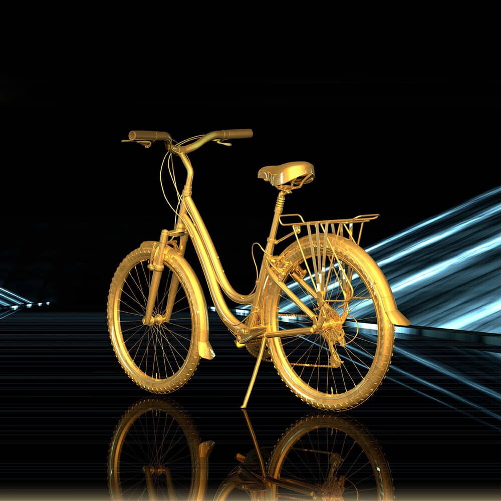 Sulla strada delle bici-gioiello, questa bici è un capolavoro del design top di gamma, una bicicletta ricoperta interamente di oro 24 carati. I cerchi, la catena, i freni, i raggi, le ruote, tutto su questa bici, tra le più costose al mondo, luccica e attrae.