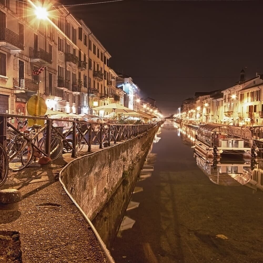 Andando in ordine cronologico, potete cominciare il vostro tour notturno in e-bike dal Naviglio Grande, le cui origini affondano nel passato medievale della città di Milano.