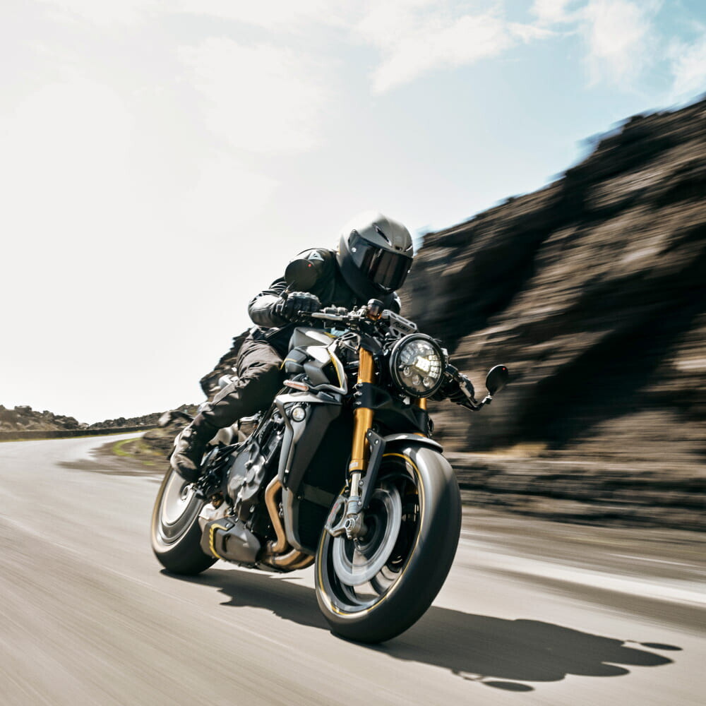 300 km/h è una velocità molto difficile da tenere con una moto carenata, figuriamoci con una naked. Ci chiediamo due cose: come fa una moto nuda a essere stabile a quella velocità? Come fa il pilota a restare attaccato al manubrio?