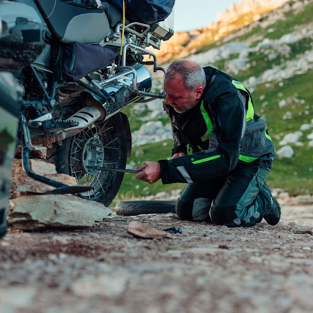 Detto questo facciamo un passo indietro, domandandoci: cosa possiamo fare per garantire il massimo della sicurezza in caso di foratura? Ovviamente non possiamo prevenirla (al momento non affrontiamo il tema dei sistemi di antiforatura, come le mousse da off-road e le schiume speciali), ma possiamo fare qualcosa per agire tempestivamente sia quando avviene, sia quando vogliamo ripararla, non solo per riprendere il viaggio ma anche per toglierci da situazioni pericolose, visto che molto probabilmente saremo fermi ai bordi di una strada.