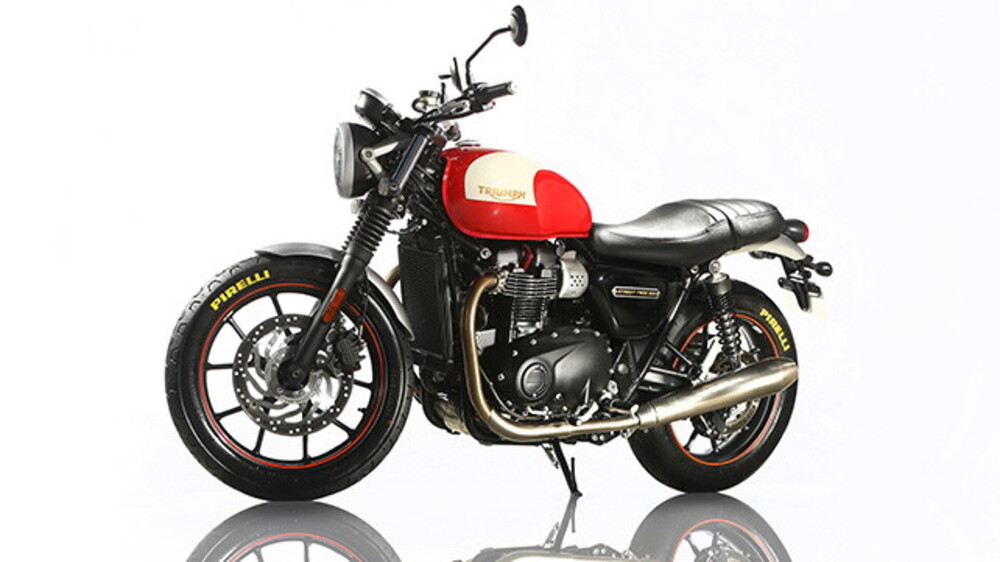 La Triumph Street Twin by Pirelli presenta la livrea utilizzata dal modello Triumph Bonneville nel 1977, unita ad alcuni elementi di personalizzazione grafica come il mitico logo Pirelli “Scudetto e Stella” sul parafango anteriore e il disegno del battistrada del PHANTOM™ Sportscomp sul serbatoio. La Street Twin è la nuova Bonneville più moderna, divertente e accessibile. Con il suo carattere unico, il motore emozionante, l'inconfondibile colonna sonora, lo stile minimalista e l'esperienza di guida dinamica, è ideale per i motociclisti di oggi. Un perfetto mix tra stile vintage e tecnologia contemporanea offerto anche dalle caratteristiche di eccellenza del PHANTOM™ Sportscomp.