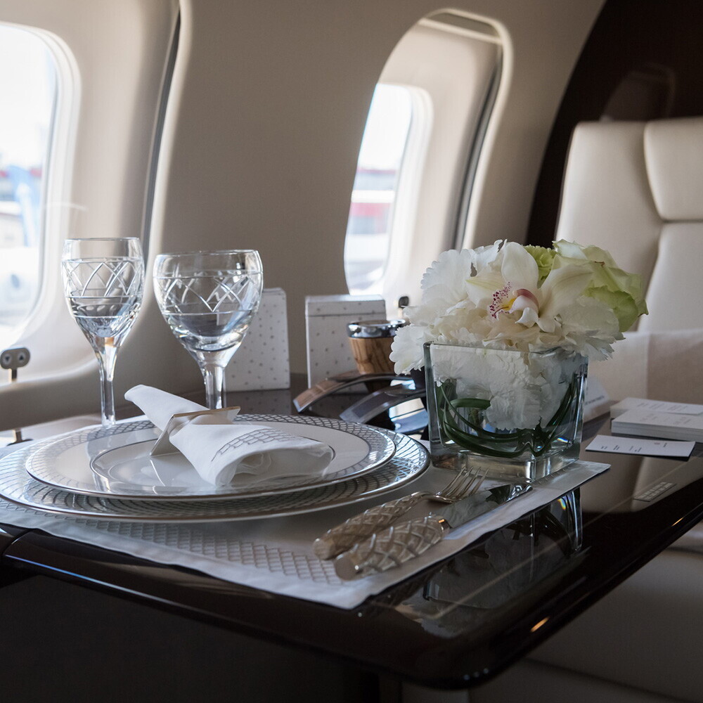 Sua própria suíte vem com tudo o que você precisa. Minibar, uma mesa de jantar para refeições em voo, kit de higiene, guarda-roupa pessoal, tomada elétrica, tela grande, persianas automáticas e, claro, wifi gratuito. Café, champanhe ou o que quer que seja de seu agrado serão servidos regularmente. O acesso ao lounge e ao bar também está incluído.